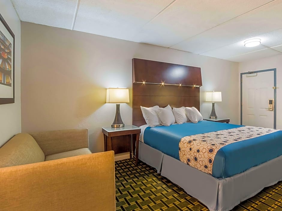 1 King Bed, Business Room, Efficiency, Suite, Nonsmoking, Accessible is 280 square feet and includes a king-size bed 150-183 width and is Wheelchair-accessible.